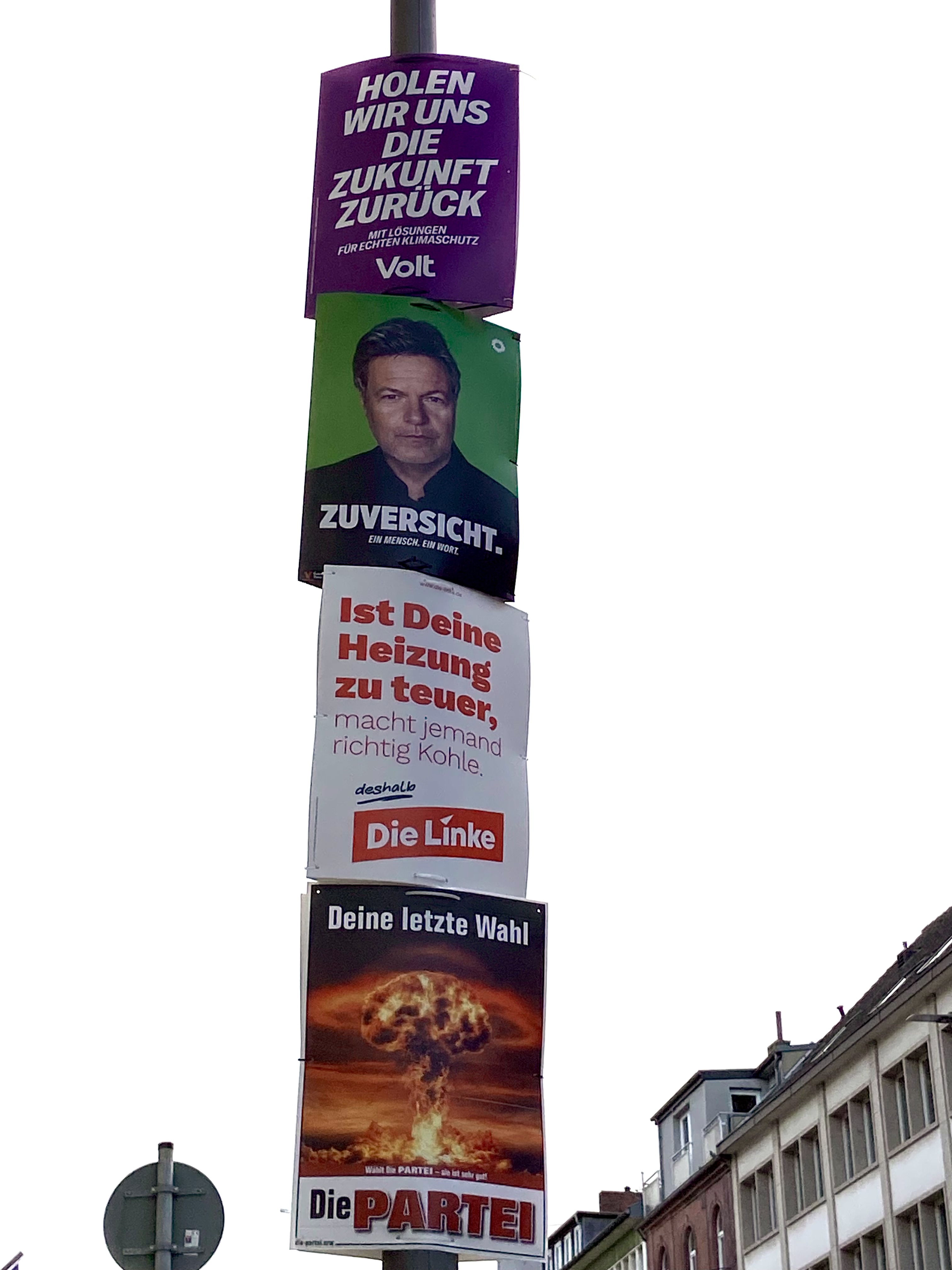 Hier noch ein bisschen Wahlwerbung. Es sind noch 19 Tage bis zur Bundestagswahl. Für diese Parteien sagen wir ein raues Wintererwachen voraus: