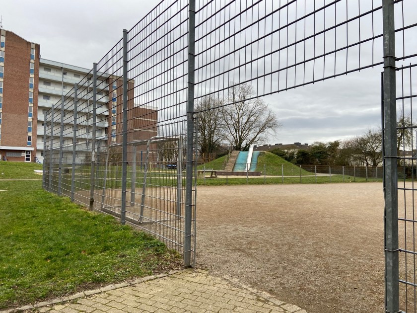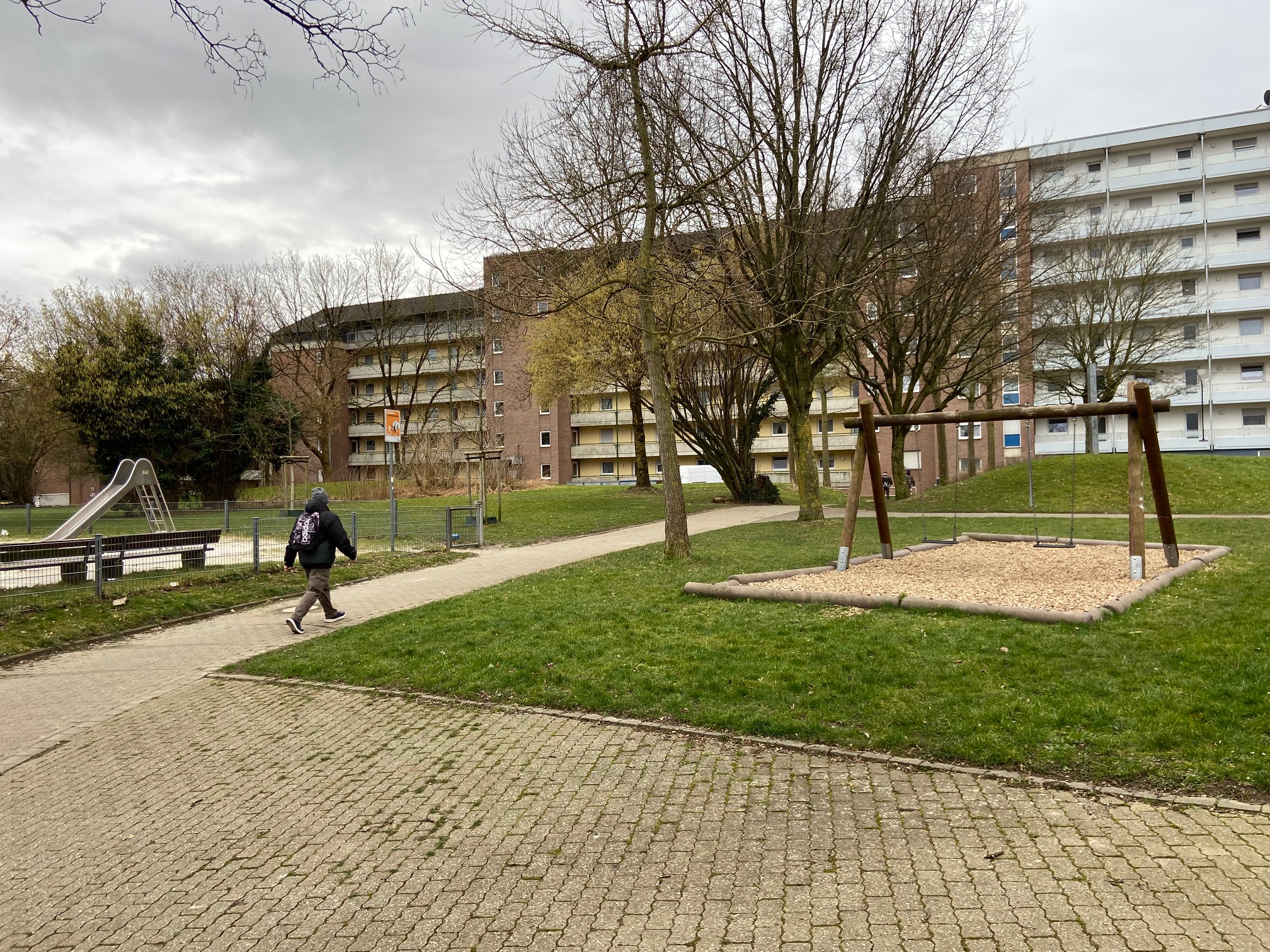 Wohngebäude und ein Spielplatz in Forst, dort wird der neue Container aufgestellt.