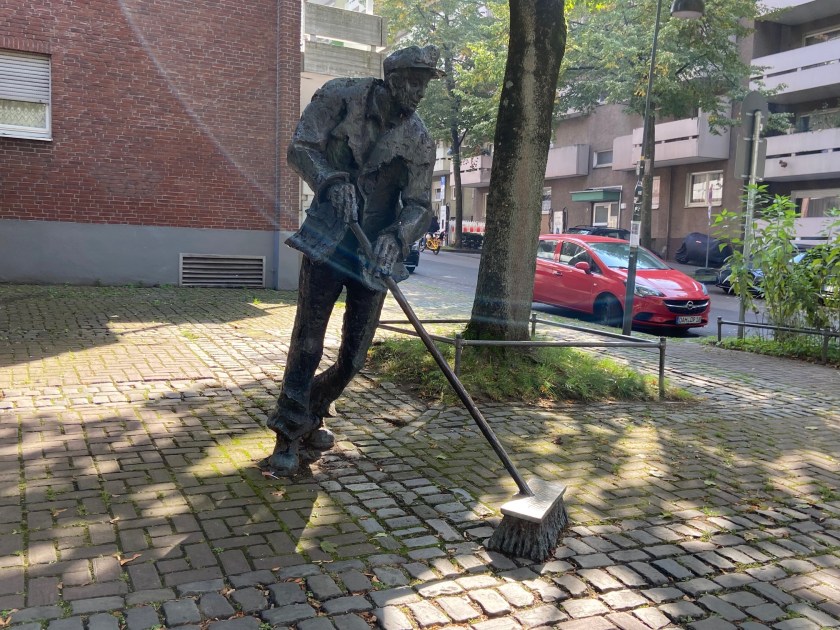Foto: Kehrmännchen-Denkmal in der Judengasse/Ecke Annuntiatenbach. Die Kräfte beim Stadtbetrieb wollen für ihre gute Arbeit verständlicherweise gut bezahlt werden.