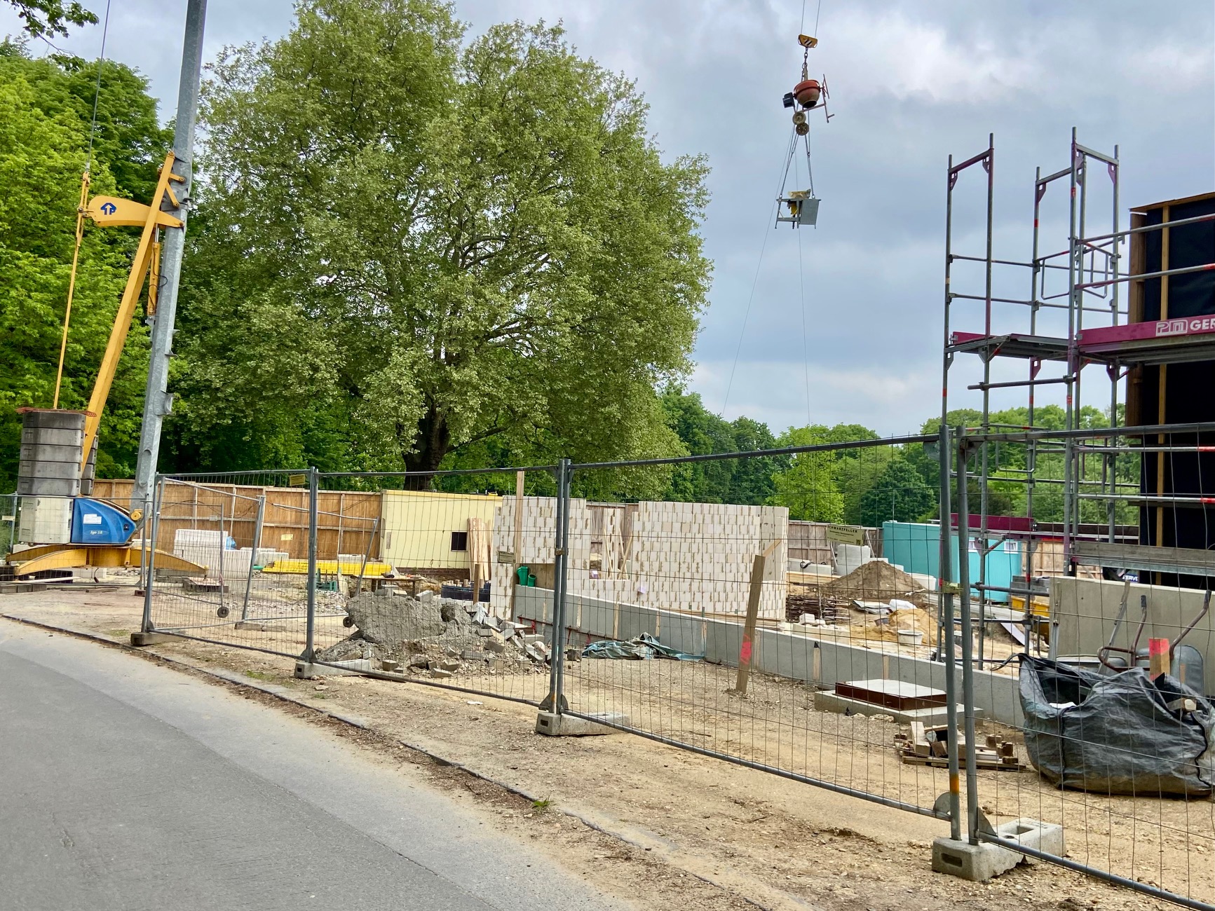 Foto: Wo mal das Kassenhäuschen stand, ist jetzt eine Großbaustelle, gut abgeschirmt vom Rest des Freibads.