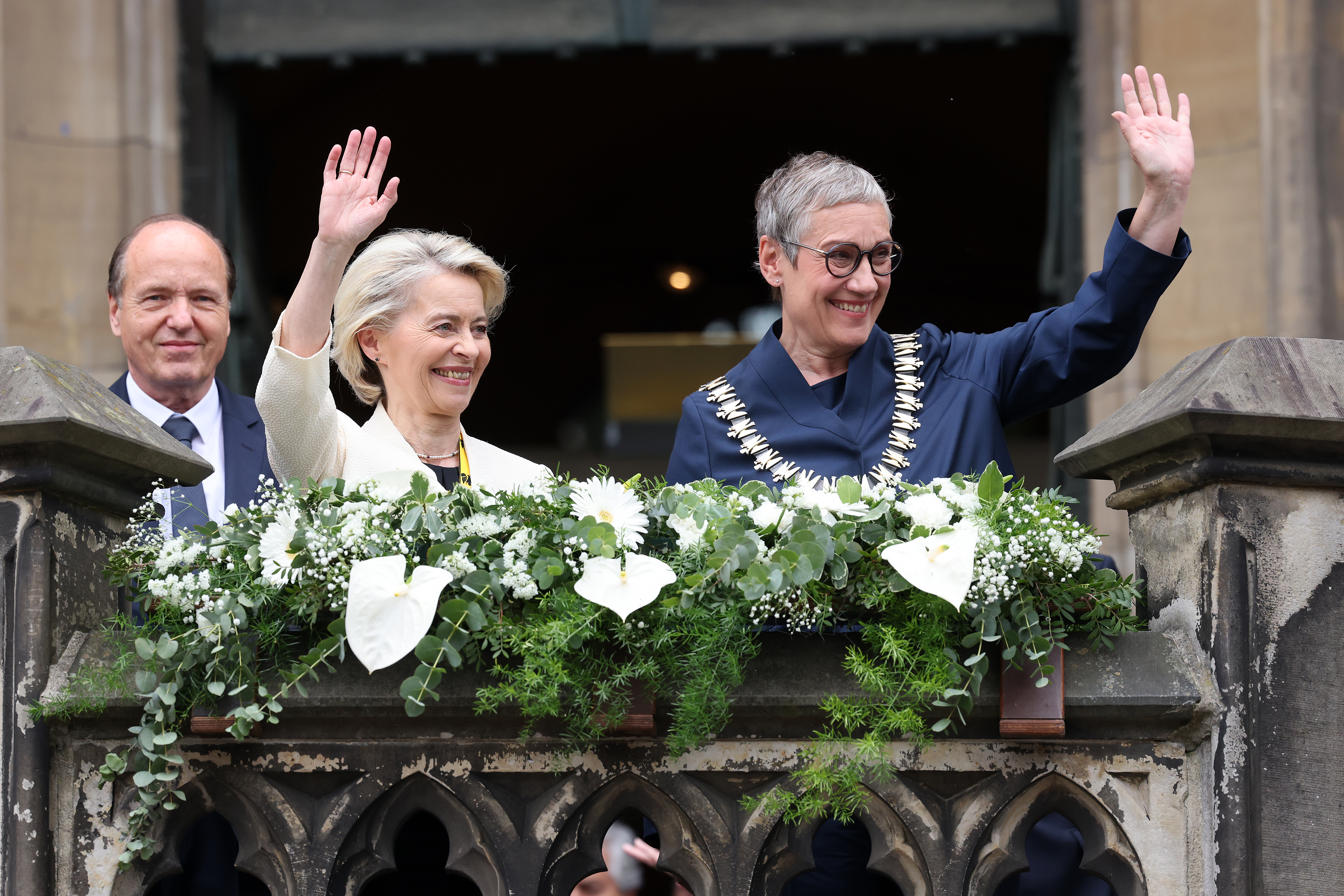 Als dritten Ort nannte von der Leyen das Aachener Rathaus, wo vor 75 Jahren der europäische Vordenker Richard Coudenhove-Kalergi als Karlspreisträger ausgezeichnet wurde. Auch er habe eine Vision für Europa gehabt: ein Europa, in dem Menschen dank gemeinsamer Kultur und Werte, Freiheit und dem Respekt vor der Menschenwürde zusammenkommen, sagte von der Leyen.