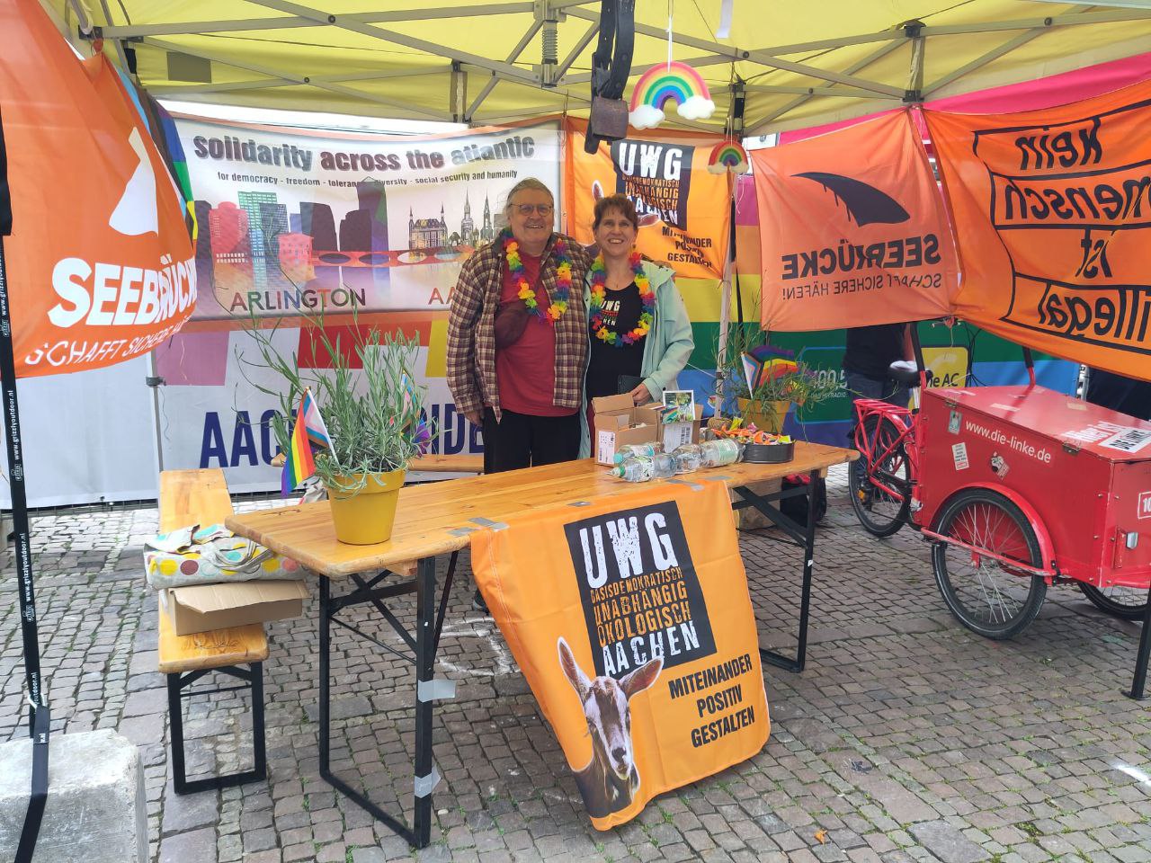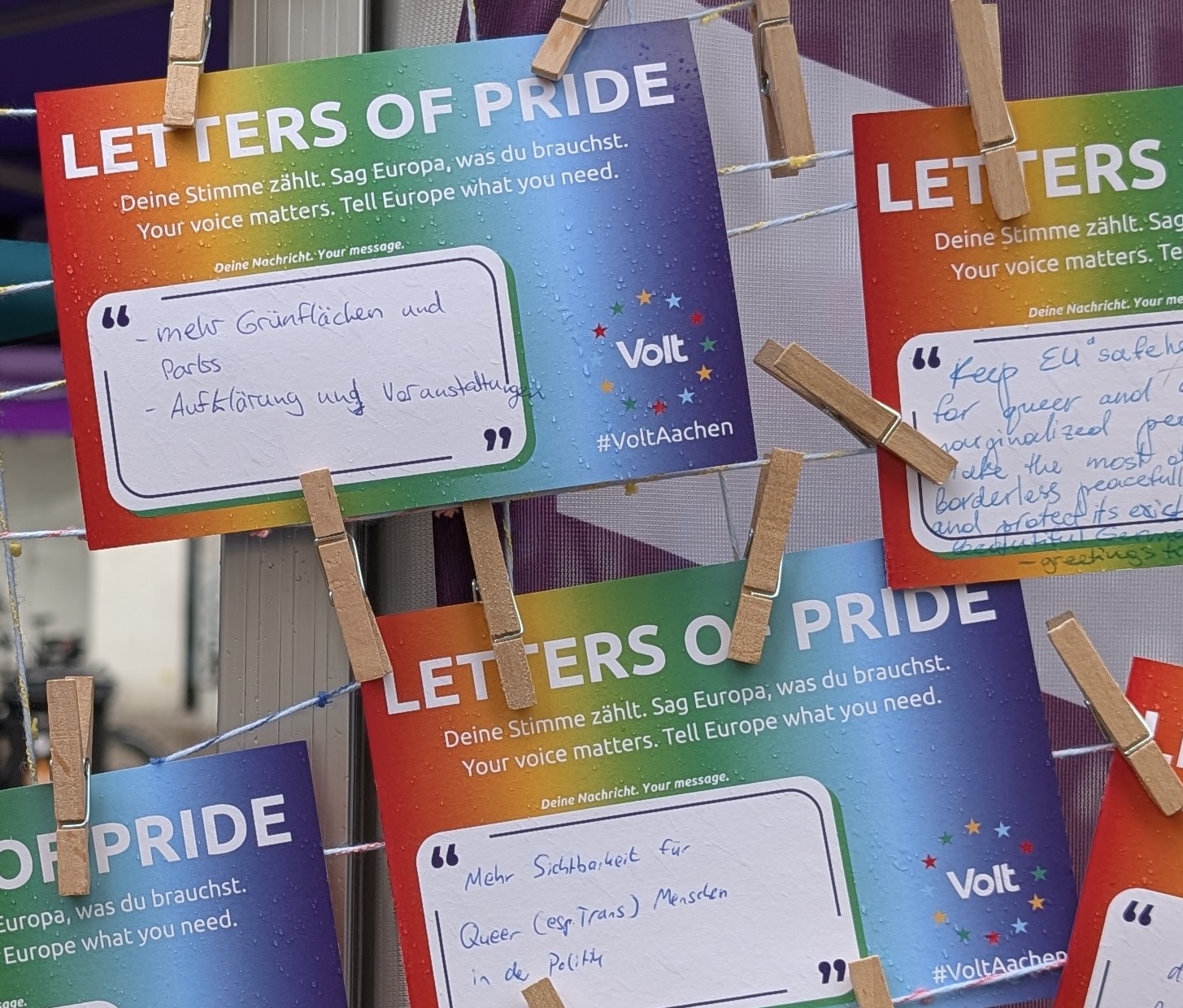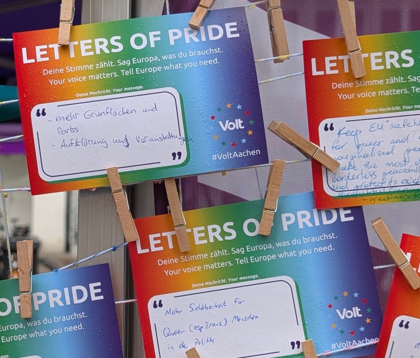 Foto: Gut gelaunt beim CSD, Aachener Mitglieder von VOLT, die im September in den Rat der Stadt gewählt werden wollen.