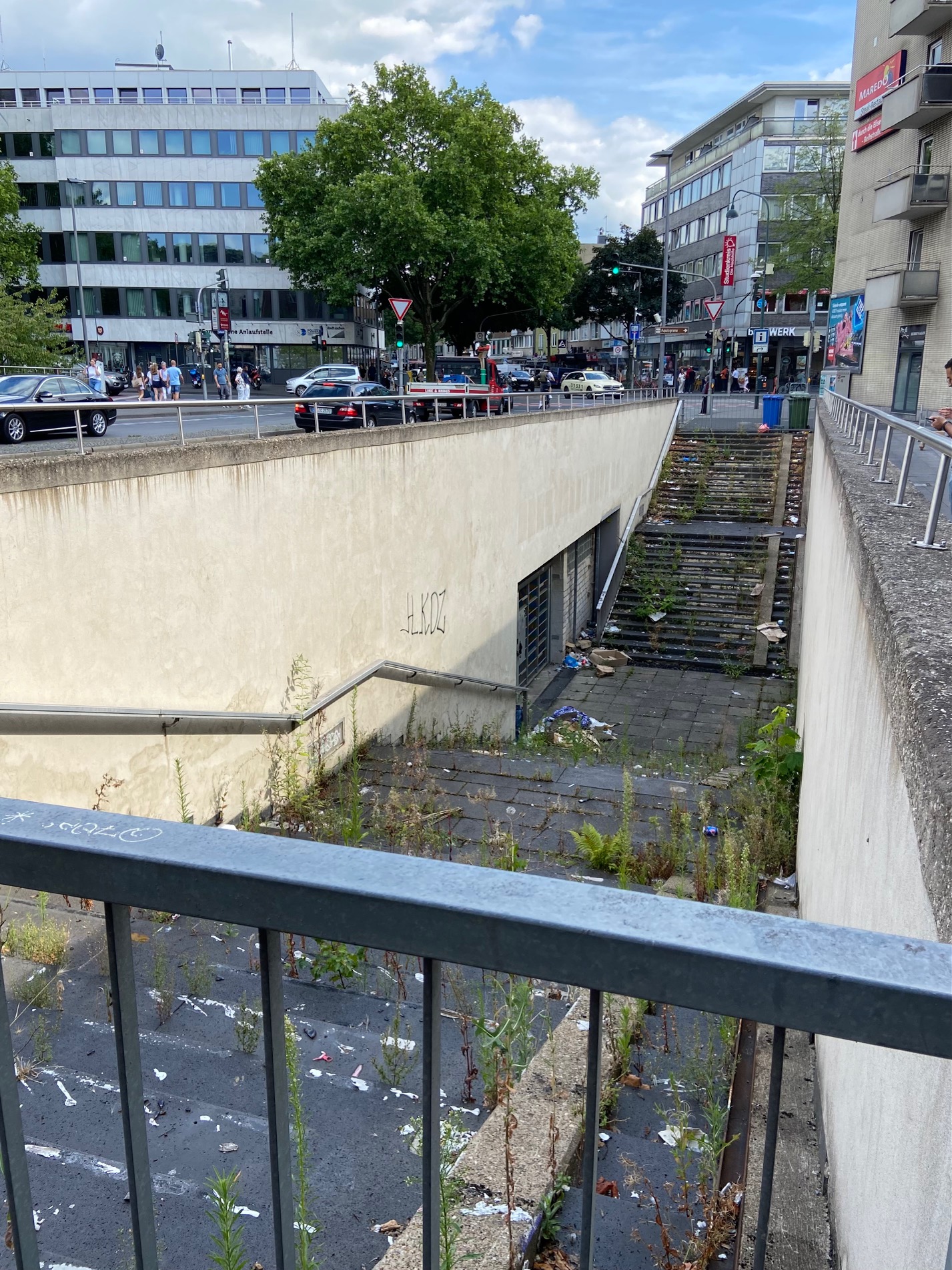 Ein weiterer Tunnel fällt ins Auge, der aus der gleichen Zeitepoche stammen dürfte. Er befindet sich im Zentrum, und nicht Pkw und Lkw sollten ihn passieren, sondern Fußgänger*innen. Sie sollten die Straße für Autos freimachen und mussten unter die Erde. Das fand man eine gute Idee. Diesen Tunnel hat man allerdings bereits seiner Funktion enthoben, der Zugang sieht heruntergekommen aus.
