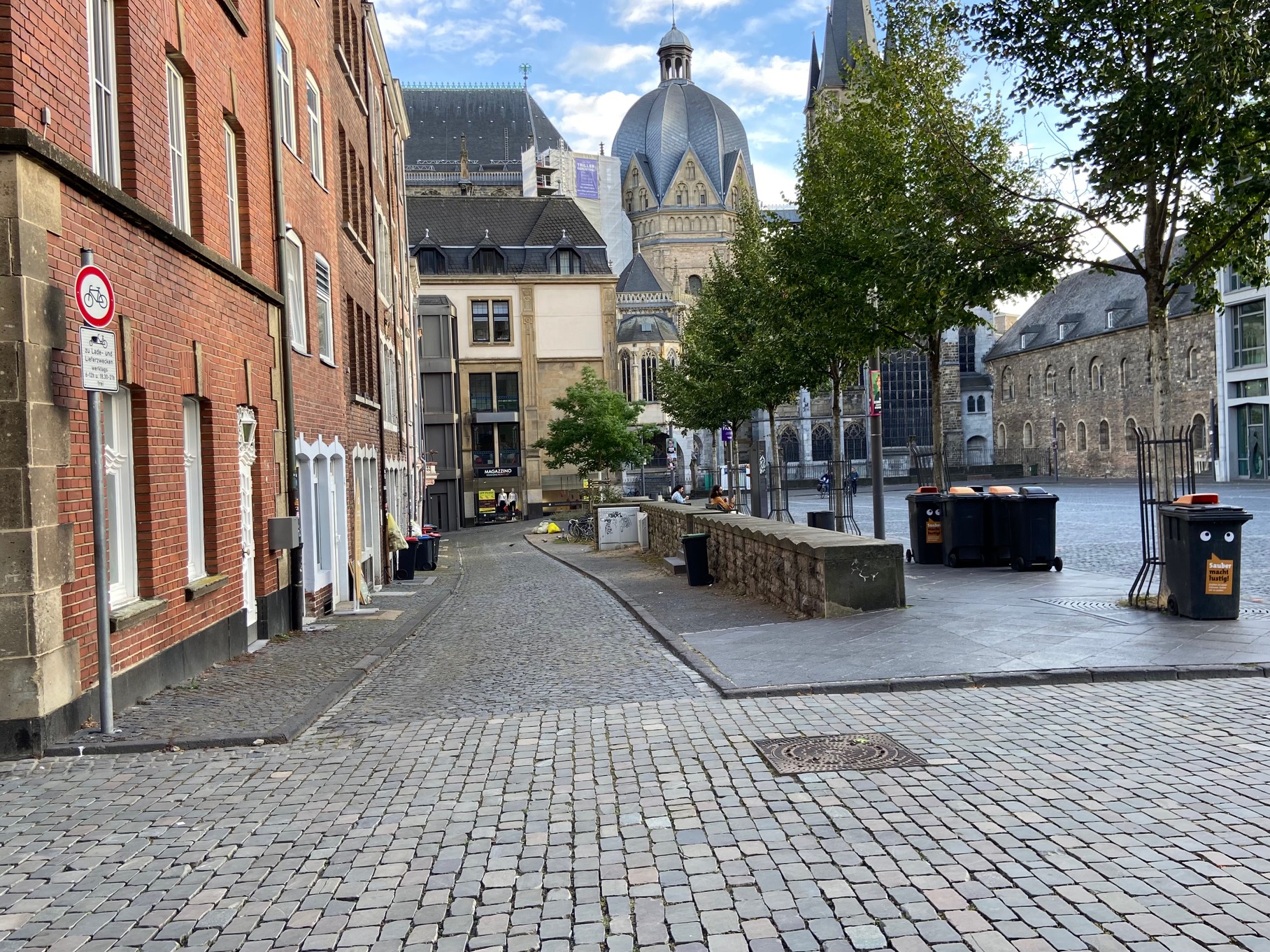 Ein Gastronom möchte in der kleinen Straße am Rand des Katschhof Tische und Stühle hinstellen. Quasi neben die Mülleimer. Ob das passt?