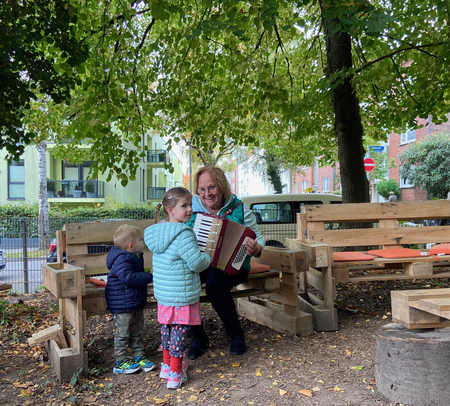 Da gibt es viel Platz und gut ein Dutzend alte, sehr schöne Bäume, die im Sommer Schatten spenden. Die Gruppe, die samstags dort arbeitet, kann übrigens noch Unterstützung gebrauchen. Beim Fest staunten viele darüber, dass in nicht mal einem Jahr das Areal von einem Schandfleck zu einem Vorzeigegarten geworden ist. In Zukunft geht es u.a. darum, die Zugänge barrierefrei zu machen.