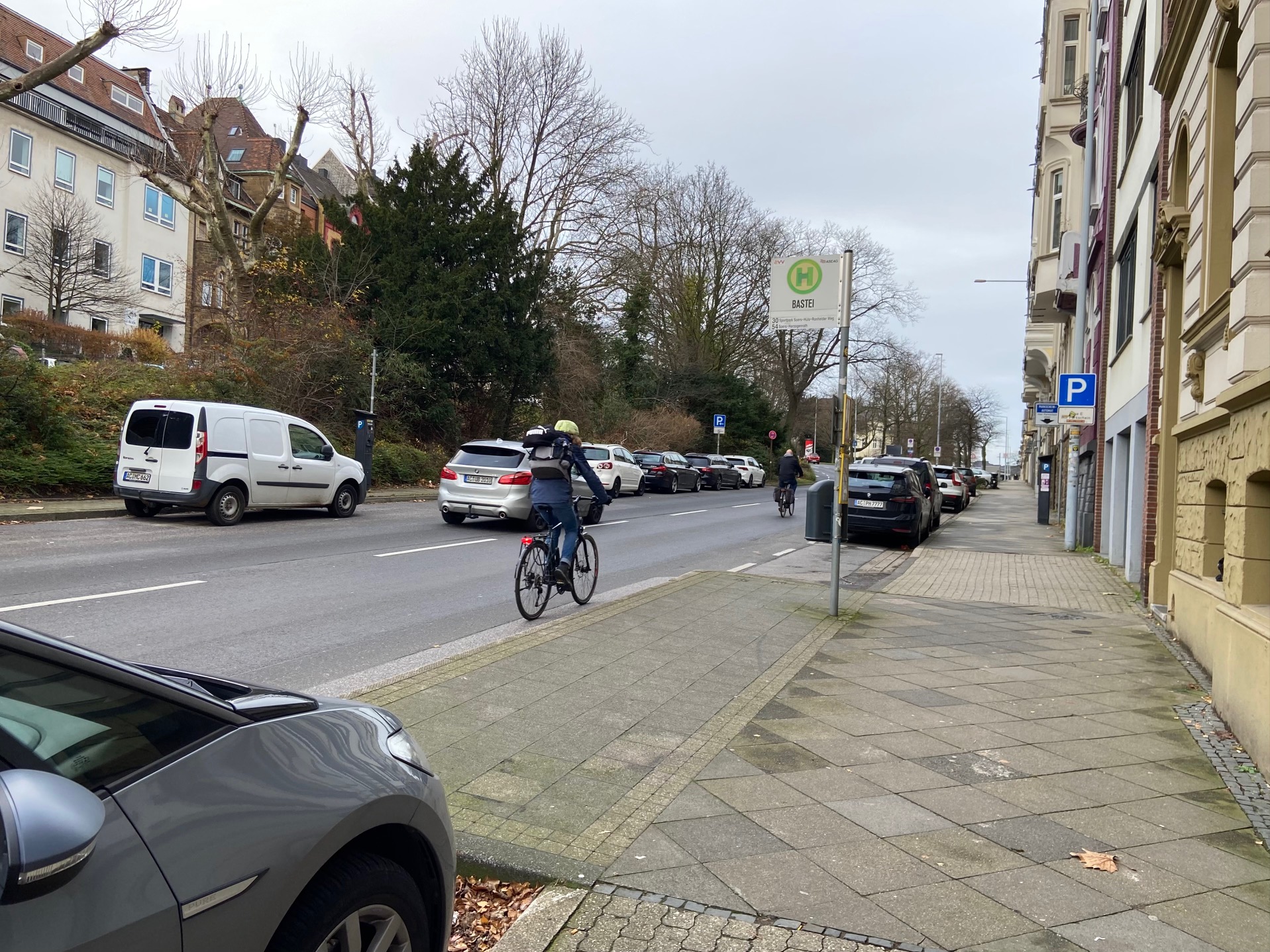Erst jüngst wurde mit Politiker*innen im zuständigen Gremium ausführlich der Umbau der Straßenstücke hinter der Bastei (Rolandstraße und Krefelder Straße) diskutiert. Die Regionetz wird dort Kanäle verlegen. . . und danach wird der Straßenraum neu aufgeteilt. Das scheint erforderlich, denn von der Monheimsallee oder der Innenstadt aus kommend haben es hinter der Bastei zumindest Radfahrer*innen und Fußgänger*innen schwer.
