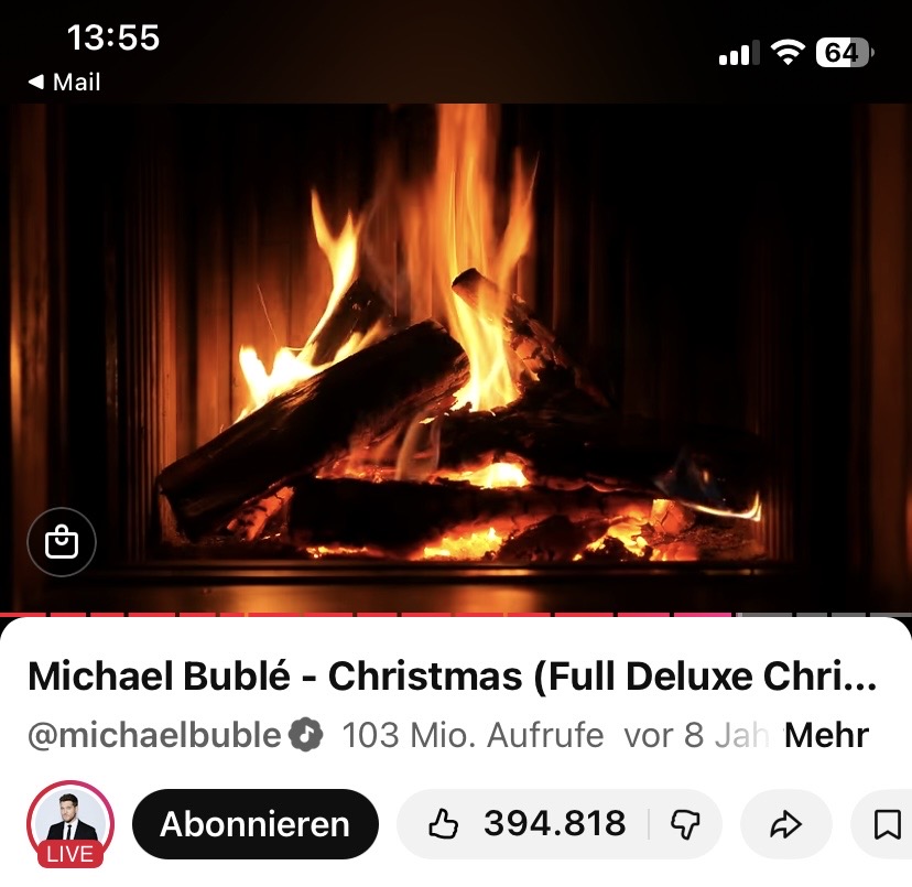 Bei vielen Familien läuft zu Weihnachten alles so ab, wie man denkt, dass es früher mal war, stark idealisiert natürlich. Auf den riesigen Flachbildschirmen in den Wohnzimmern findet man neuerdings Fireplace-Videos – wie dieses hier oder dieses. Man spült sich ein Kaminfeuer auf die großen Displays im Wohnzimmer und findet das schön. Flammen im Kamin, durch KI generiert, sind ein Hit.