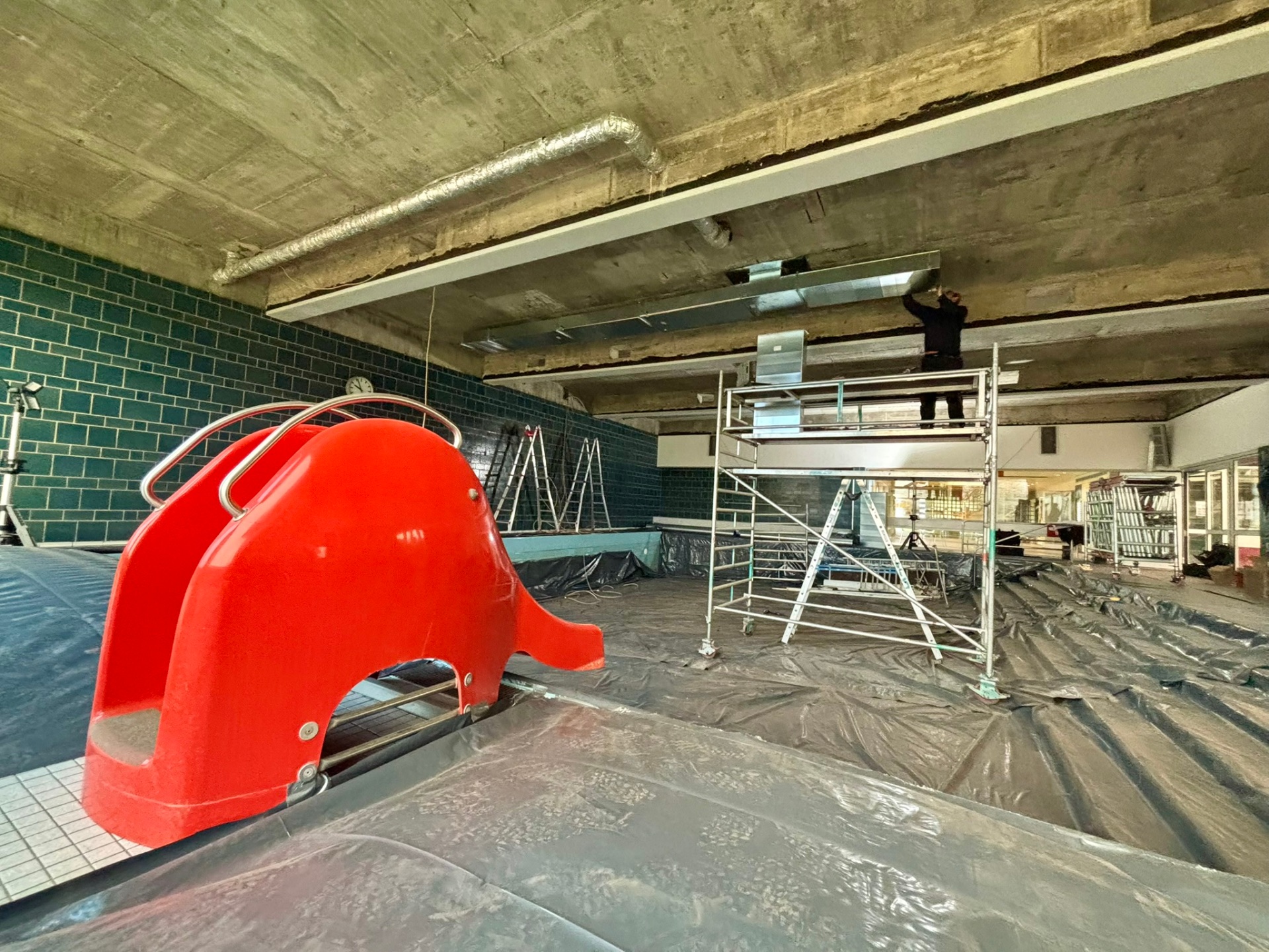 Das Abfallen eines Teils der Deckenverkleidung über dem Nichtschwimmerbecken in Brand geht nach derzeitigem Untersuchungsstand auf Korrosionsschäden zurück. Nun sind provisorische Leuchten in dem Bereich installiert worden und die Belüftungsanlage wurde wieder fachgerecht montiert.