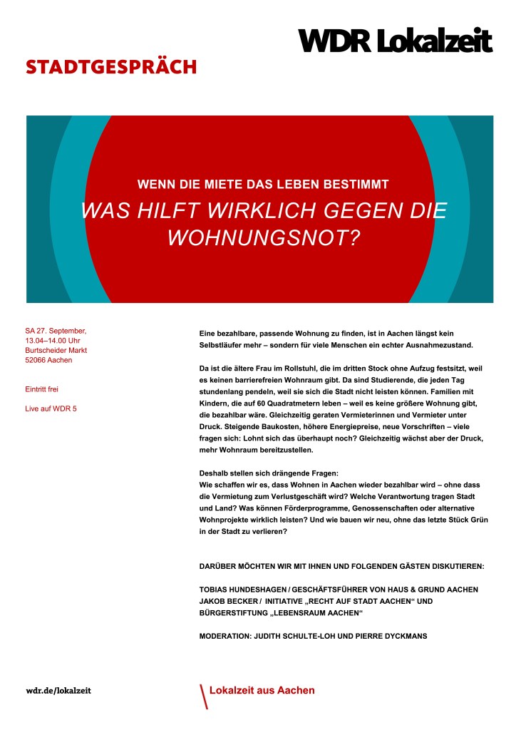 Im Laufe der Veranstaltung wurde eine kurze Animation gezeigt, die die Begrünung des Vorplatzes des Aachener Bahnhofs zeigt (erstellt vom Verein „Klimanotstand“). Ebenso wurden Bilder von Dachbegrünung und von Tiny Forest gezeigt.
