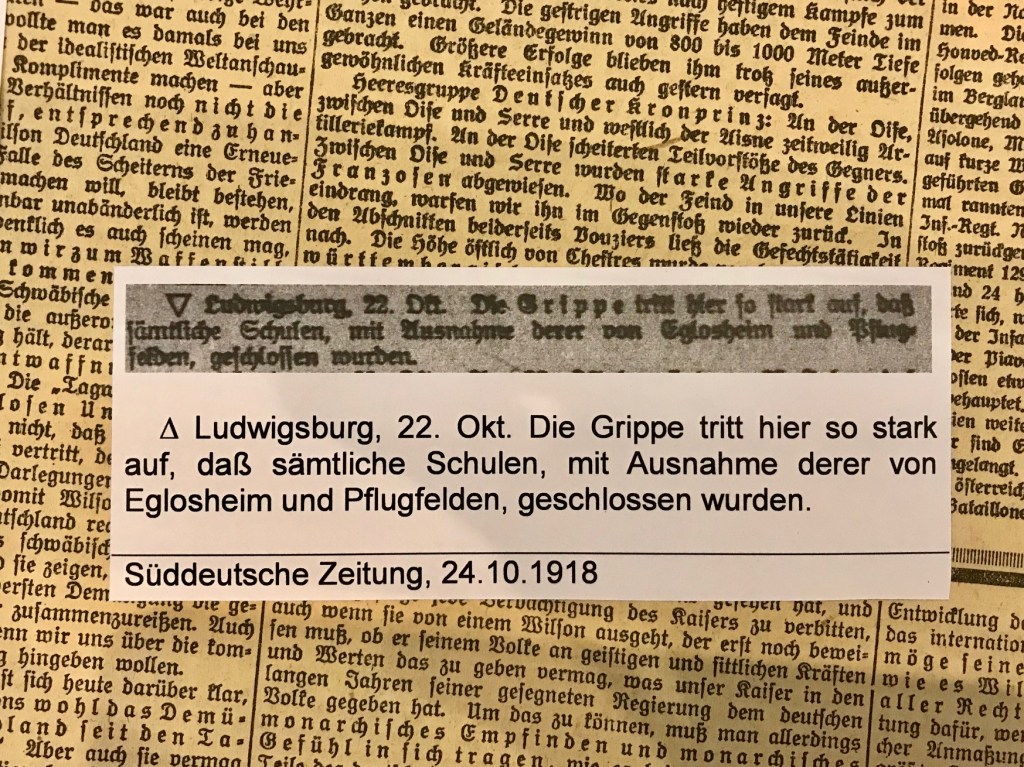Kluges Handeln hat 2020 verhindert, was vor 100 Jahren passierte: Die Apotheken wurden gestürmt, die Krankenhäuser waren rappelvoll und die Menschen starben in Massen. z. B. wurden 800 Tote in einer kleinen Stadt für einen einzigen Tag gemeldet, aber es seien alles Menschen mit schlechter Konstitution gewesen, so steht – noch im Angesicht des Massensterbens alles verharmlosend – sinngemäß da.