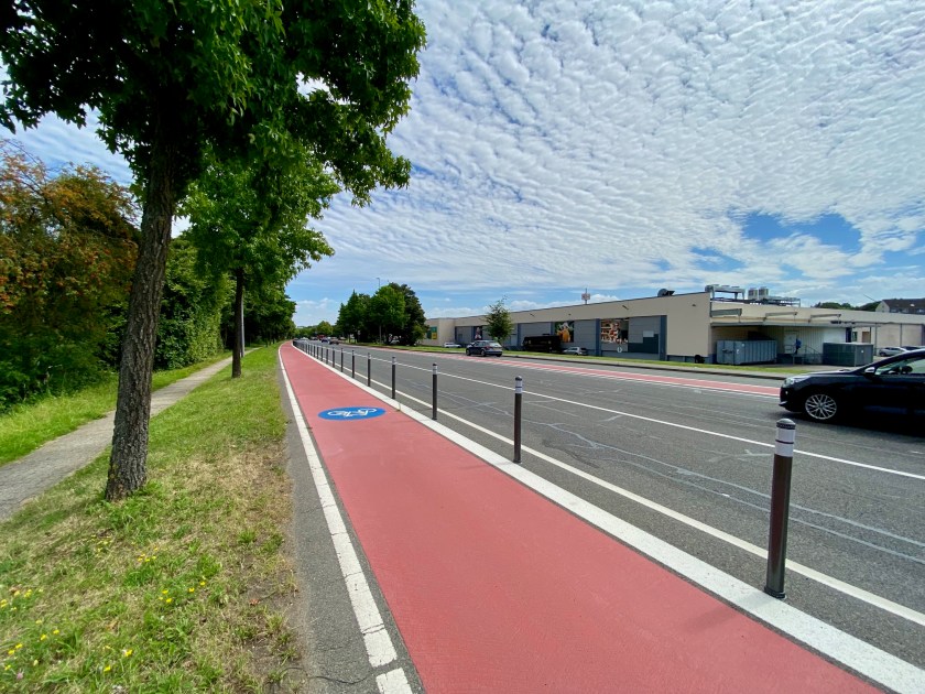 Das ist mal eine Fahrradstraße in Aachen, eine Protected Bike Lane. Die Breslauer Straße hatten wir bei AachenNews irgendwie nicht auf dem Schirm, abgelegt unter: Mit dem Rad da nicht fahren, zu gefährlich und zu viele Hubbel.