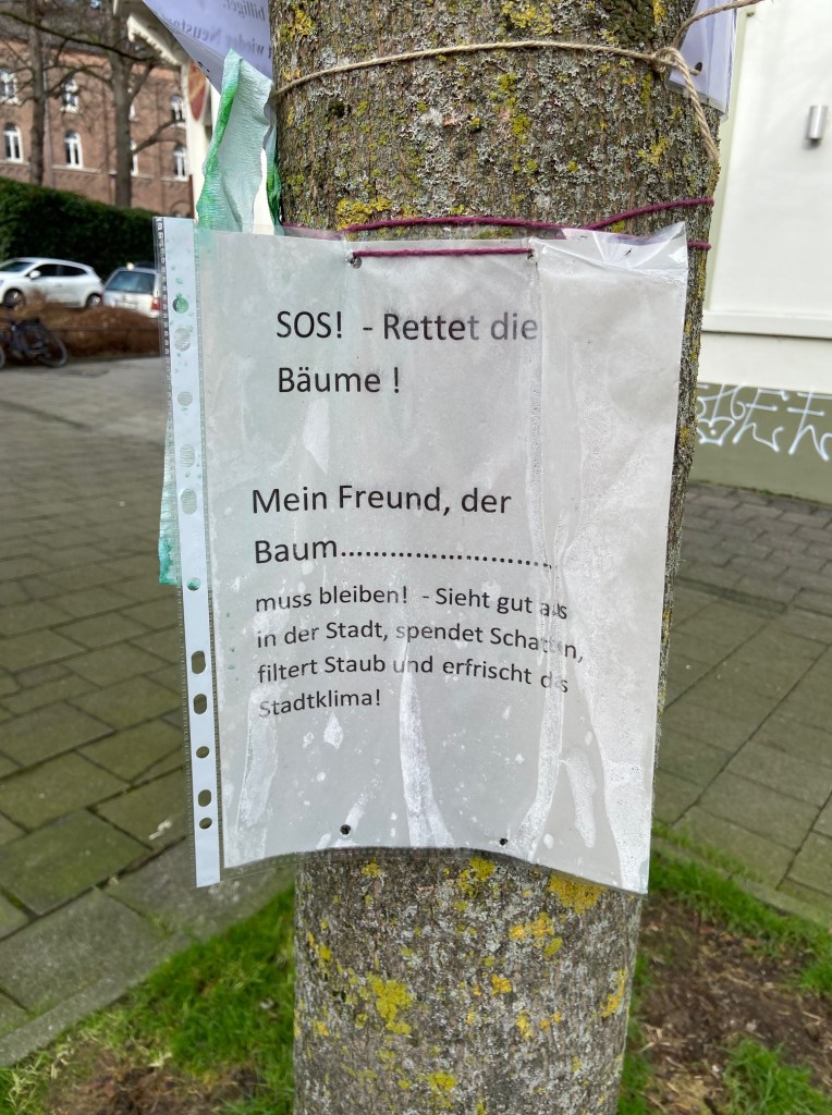 Wo sind eigentlich die Baumbesetzer*innen (wie Henning Nießen von den Grünen) wenn man sie mal braucht? Die Fraktion Zukunft hat übrigens im Planungsausschuss der Fällung nicht zugestimmt. Aber was will man machen, wenn man im Rat nicht die größte Fraktion ist, sondern die Grünen die größte Fraktion sind?