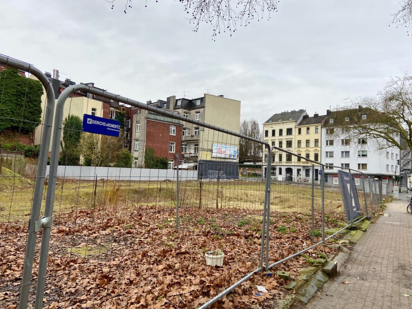 Ein Bauvorhaben in der Warteschleife (70 Wohnungen, eine Kita). An der Ecke Junkerstraße/Lochnerstraße sollte eigentlich 2024 ein Wohnkomplex fertig sein. Daraus wird nichts. Bis etwa April 2020 gab es dort eine Tankstelle. Hier mehr dazu.