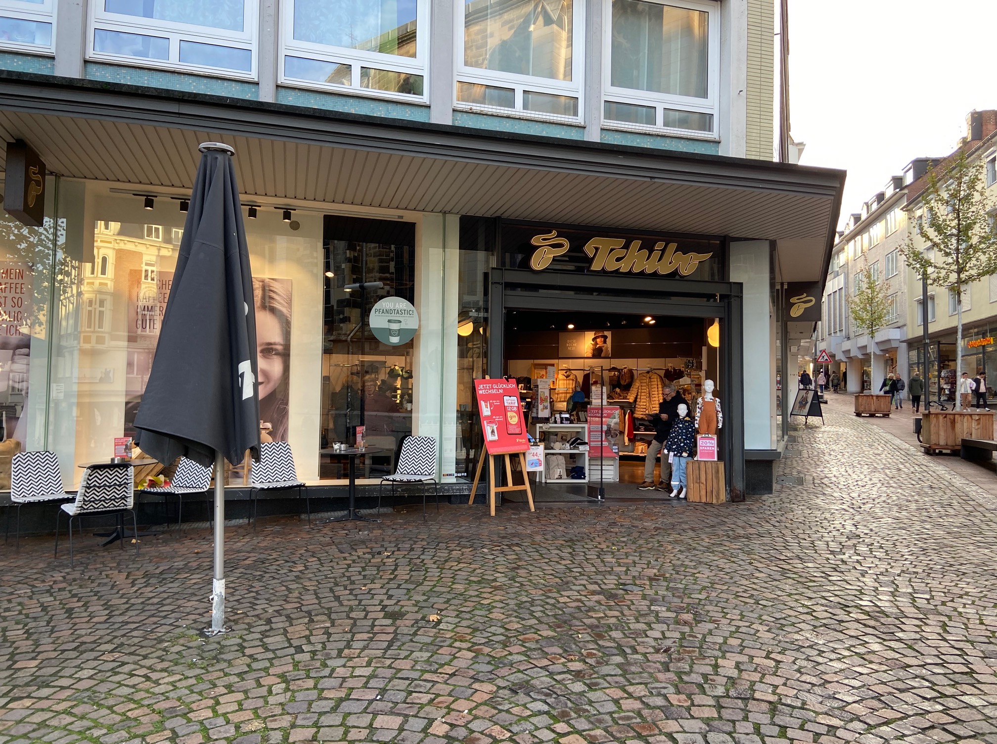 Ende diesen Jahres ist Schluss mit Tchibo in Aachen, zumindest mit dem Laden in der Großkölnstraße. Dann kann man Tchibo-Kaffee nur noch bei Discountern kaufen. Außer Kaffee bietet Tchibo bekanntlich auch allerlei Teile an, die im Haushalt gebraucht werden, außerdem Socken und Schlafanzüge und so Sachen. In Aachen (korrigiert: nicht immer in der Großkölnstraße) war der Kaffeeröster 65 Jahre lang präsent. Ein Nachmieter für den 300 Quadratmeter großen Laden gegenüber von St. Nikolaus soll schon gefunden worden sein. Zuletzt machte die Einkaufsstraße mit kleinen Bäumen in Kübeln auf sich aufmerksam. (Nebenbei: Woher kommt der Name Tchibo? Vom Armenier Carl Tchilinghiryan)