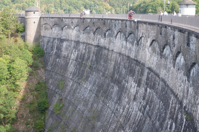 Zweimal pro Jahr übt die Feuerwehr Aachen hier. Der Wasserverband Eifel-Rur betreibt die gigantische Staumauer. Rund 60 Meter hoch ragt sie vom Obersee aus in den Himmel, wurde zwischen 1900 und 1905 erbaut.