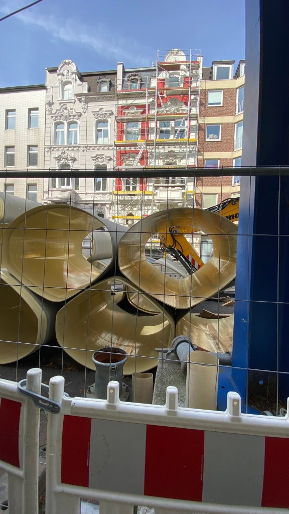 Rechts und links, oben und unten, wo man geht und steht in Aachen: Baustellen. Foto: Nähe Alfonsstraße. Es kommt ja auch keine/r mehr pünktlich und einjeder weiß: „Der/die steckt bestimmt gerade wegen einer Baustelle fest, wir warten noch eine Weile.“