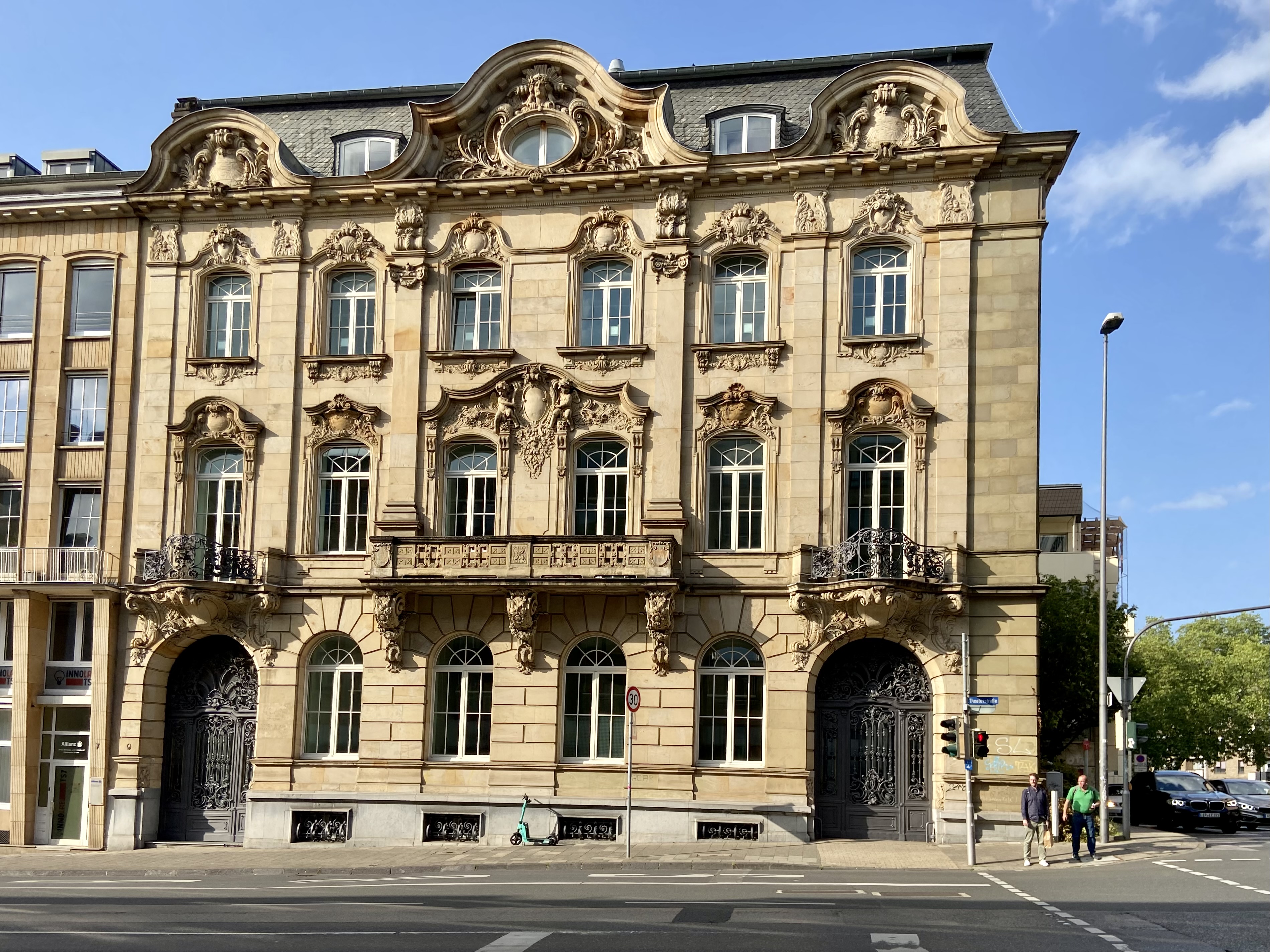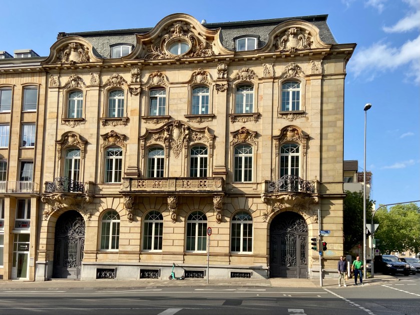 Das Bankhaus mit der kunstvollen, alten Fassade wurde – laut Wikipedia – 1900 von dem Aachener Architekten Eduard Linse (der auch das heutige Suermondt-Ludwig-Museum, Wilhelmstraße, baute) errichtet. Es ist ein monumentales, neobarockes Gebäude. Jahrelang hieß es, dort würden Wohnungen entstehen, jetzt sollen es elegante Büros sein. Dort gibt es Räume mit bis zu 4 Meter hohen Decken.