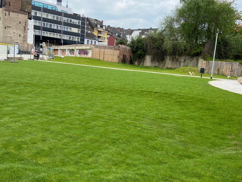Wo jetzt eine Wiese ist, stand mal ein Parkhaus, das häßlich war, teilweise baufällig und in dem es stank. Jetzt wird zum 2. ZwischenFest eingeladen, das startet am Freitag, 12. Mai, um 16 Uhr.